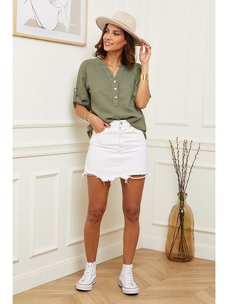 Le Monde du Lin Lniana bluzka w kolorze oliwkowym rozmiar: 38/40