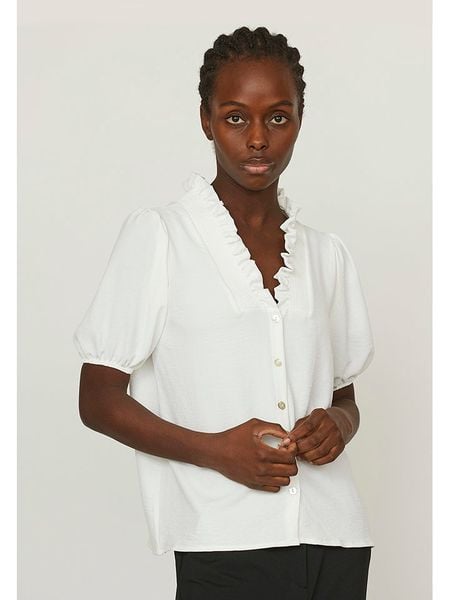 – kołnierz: stójka- dekolt: V- zapięcie: listwa guzikowa- rękaw: bufiasty- zakończenie rękawów: elastyczne- krój: prosty- look: jednokolorowy