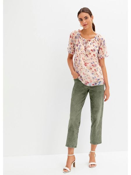 – dekolt: z rozcięciem- detale: ozdobne wiązanie- krój: prosty- wzór: kwiatowy