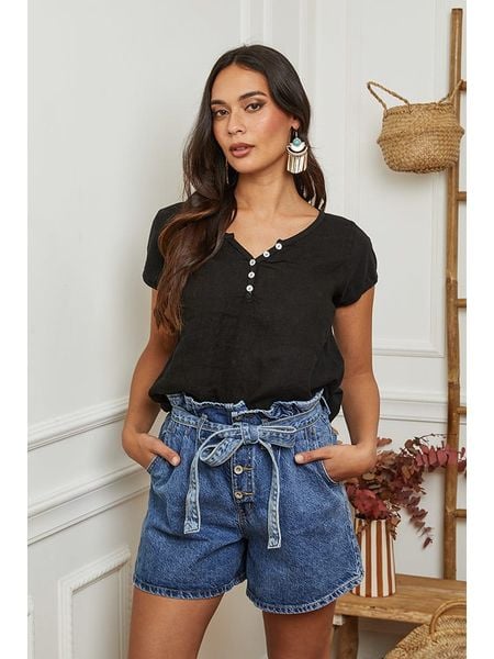 czarne bluzki bluzki ze sklepu limango.pl bluzki bez ramiączek bluzki bez kołnierzyka bluzki bez rękawów odzież damska limango.pl bluzki la compagnie du lin odzież damska la compagnie du lin