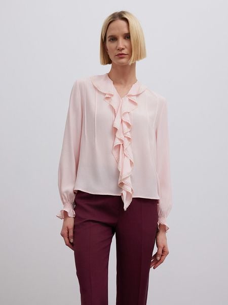 – czysta wiskoza- dekolt: V- detale: falbany- zakończenie rękawów: elastyczne- krój: luźny- look: jednokolorowy