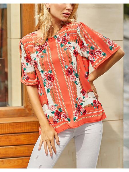 – dekolt: okrągły- zapięcie: guzik na plecach- krój rękawów: motylek- krój: luźny- wzór: kwiatowyUwaga: Przy wyborze właściwego wariantu zaleca się korzystanie z tabeli rozmiarów.