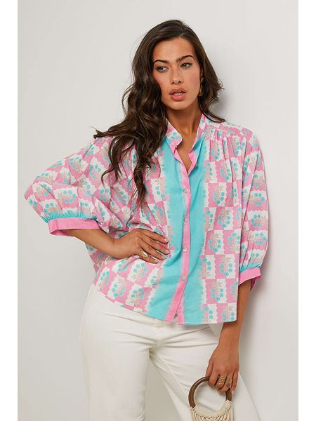 Le Monde du Lin Bluzka w kolorze jasnoróżowo-turkusowym rozmiar: 38/40