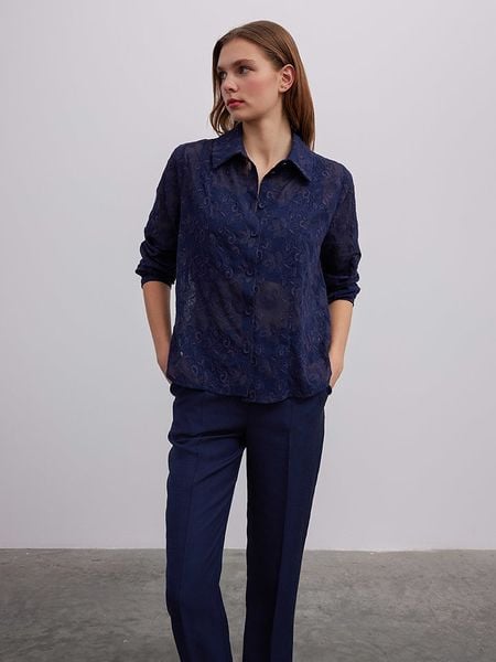 – z dodatkiem bawełny- kołnierz: kent- zapięcie: listwa guzikowa- zakończenie rękawów: guzik- krój: prosty- detale: haft- look: jednokolorowy- wykończenie: delikatnie prześwitująceUwaga: Przy wyborze właściwego wariantu zaleca się korzystanie z tabeli rozmiarów.