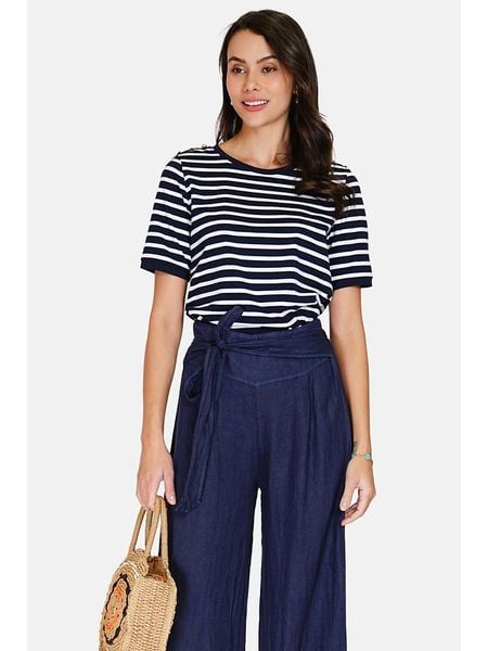 – dekolt: okrągły- krój: luźny- wzór: paskiWskazówka: Na metkach odzieży tej marki znajdują się rozmiary francuskie. Rozmiarówka została przez nas przeliczona. Podane do wyboru warianty rozmiarów odpowiadają standardowym europejskim rozmiarom konfekcji. Prosimy zapoznać się z zamieszczonym objaśnieniem rozmiarów: