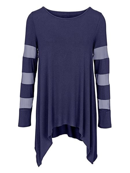 – dekolt: łódka- dolny brzeg: asymetryczny- siateczkowe wstawki: tak- krój: luźny- look: jednokolorowy