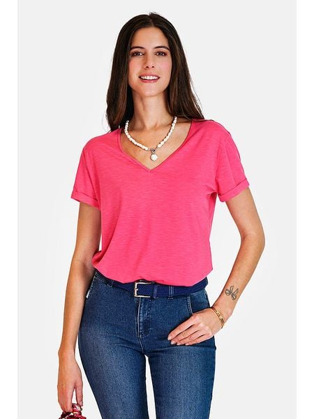 – z dodatkiem lnu- dekolt: V- zakończenie rękawa: podwijane- krój: prosty- look: jednokolorowyWskazówka: Na metkach odzieży tej marki znajdują się rozmiary francuskie. Rozmiarówka została przez nas przeliczona. Podane do wyboru warianty rozmiarów odpowiadają standardowym europejskim rozmiarom konfekcji. Prosimy zapoznać się z zamieszczonym objaśnieniem rozmiarów.