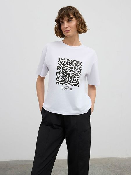 – dekolt: okrągły- krój: prosty- nadruk: graficzny- look: jednokolorowyUwaga: Przy wyborze właściwego wariantu zaleca się korzystanie z tabeli rozmiarów.