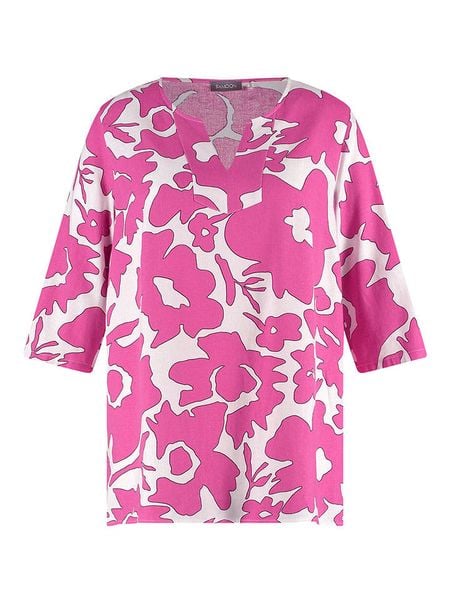 – z dodatkiem lnu- dekolt: z rozcięciem- długość rękawa: 3/4- krój: luźny- wzór: na całości