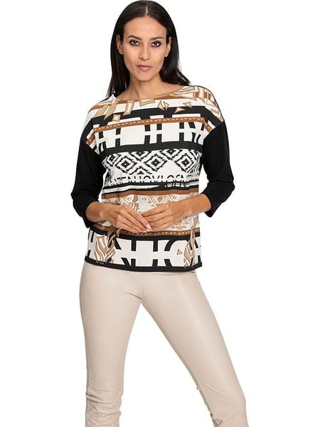 – dekolt: okrągły- długość rękawa: 3/4- detale: nakładane rękawki- krój: prosty- wzór: mix