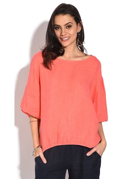 Le Jardin du Lin Lniana bluzka w kolorze koralowym rozmiar: 40