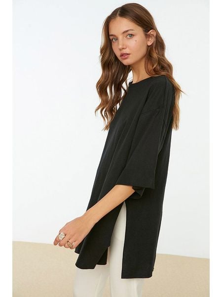 – czysta bawełna- dekolt: okrągły- dolny brzeg: z rozcięciem- krój: luźny- look: jednokolorowy