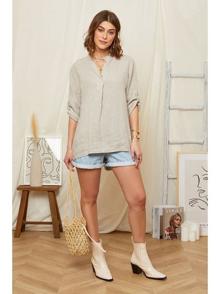 – czysty len- dekolt: V- zakończenie rękawów: patka i guzik- krój: prosty- look: jednokolorowy