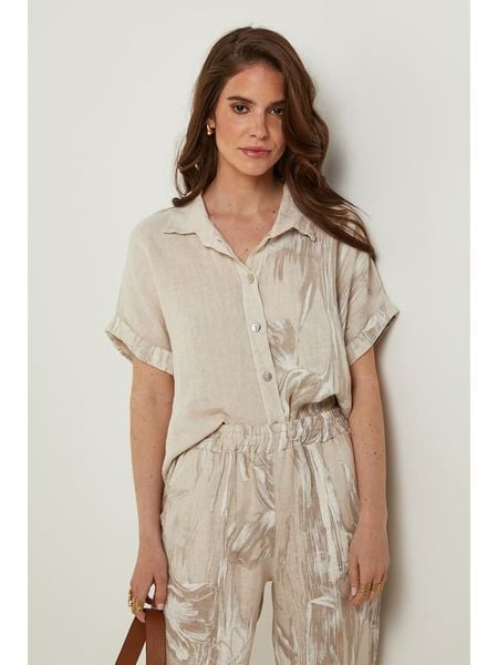 – czysty len- kołnierz: kent- zapięcie: listwa guzikowa- zakończenie rękawa: podwijane- krój: luźny- wzór: kwiatowy