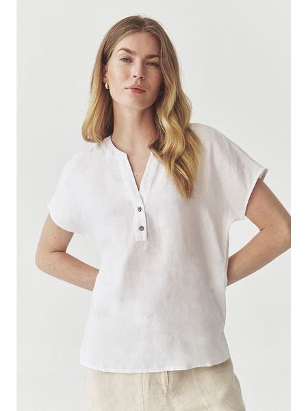 – czysty len- zapięcie: skrócona listwa guzikowa- dekolt: V- krój rękawów: nietoperz- krój: prosty- dolny brzeg: z rozcięciem- look: jednokolorowy