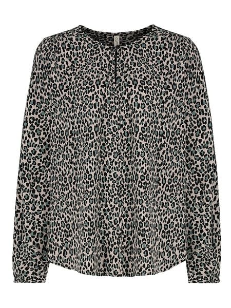 – czysta wiskoza- dekolt: okrągły- zapięcie: guzik- zakończenie rękawów: guzik- krój: luźny- wzór: panterka