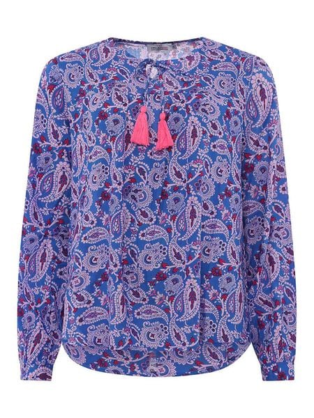 – czysta wiskoza- dekolt: z rozcięciem- zakończenie rękawów: mankiet na guzik- detale: ozdobne wiązanie- krój: prosty- wzór: orientalny