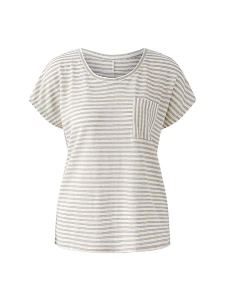 Oui Lniana koszulka w kolorze szarobrązowo-białym rozmiar: 42