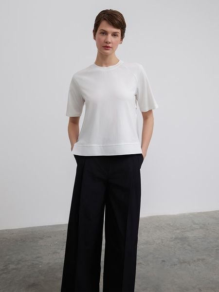 – dekolt: okrągły- dolny brzeg: z rozcięciem- krój: prosty- look: jednokolorowy