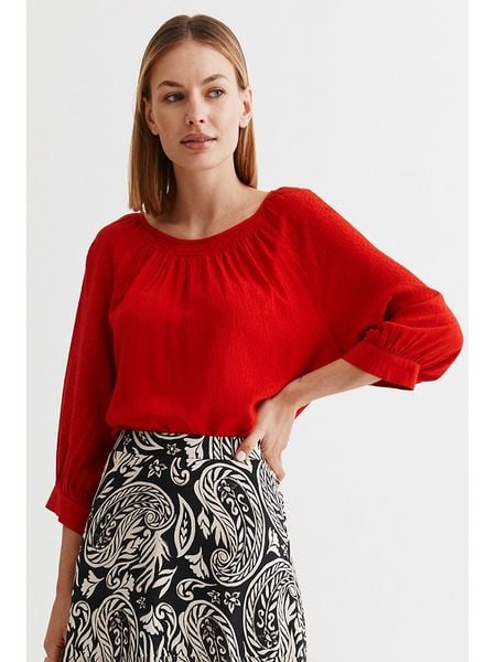 – czysta wiskoza- dekolt: okrągły- zapięcie: guzik na plecach- długość rękawa: 3/4- zakończenie rękawów: elastyczne- krój: luźny- look: na całości, jednokolorowy