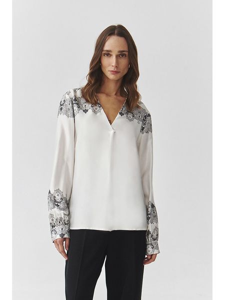 – czysta wiskoza- dekolt: V- rękaw: bufiasty- krój: prosty- wzór: graficzny
