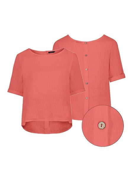 – dekolt: łódka- zapięcie: guziki na plecach- zakończenie rękawa: podwijane- krój: prosty- look: jednokolorowy