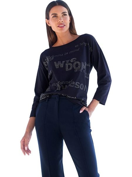 – dekolt: łódka- długość rękawa: 3/4- detale: ozdobne kamyczki- krój: luźny- look: jednokolorowy