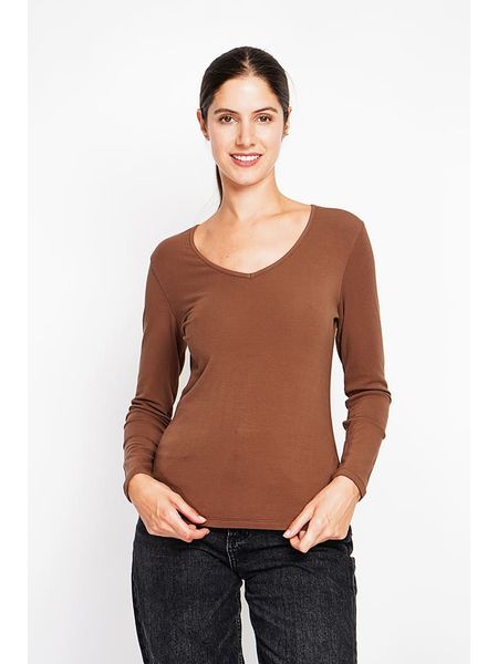 bluzki bez rękawów bluzki z okrągłym kołnierzem bluzki z długim rękawem bluzki bez kołnierzyka odzież damska assuili bluzki assuili odzież damska limango.pl brązowe bluzki bluzki bez ramiączek bluzki ze sklepu limango.pl