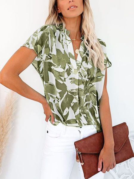 – dekolt V- krój rękawów: motylek- dolny brzeg: zaokrąglony- krój: prosty- wzór: kwiatowy