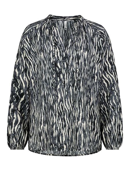 – dekolt: z rozcięciem- zakończenie rękawów: elastyczne- detale: ozdobne wiązanie- krój: luźny- wzór: na całości