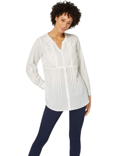 – czysta bawełna- dekolt: V- zapięcie: listwa guzikowa- zakończenie rękawów: patka i guzik- krój: prosty- detale: szydełkowana koronka- dolny brzeg: zaokrąglony- look: jednokolorowy