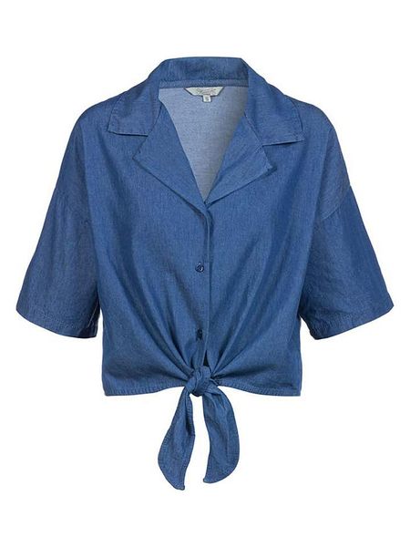 – czysta bawełna- kołnierzyk: z klapami- zapięcie: listwa guzikowa- detale: ozdobne wiązanie- krój: prosty- przetarcia: tak
