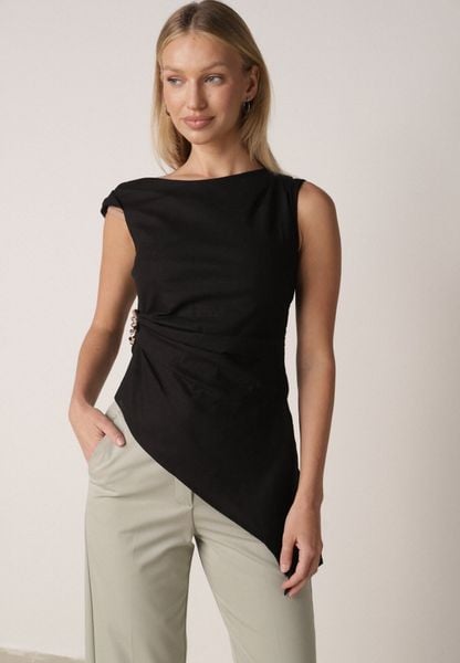 bluzki bez rękawów odzież damska born2be czarne bluzki bluzki z asymetrycznym kołnierzem bluzki ze sklepu born2be.pl bluzki born2be bluzki bez kołnierzyka odzież damska born2be.pl bluzki bez ramiączek