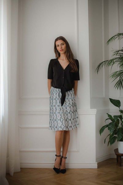 Czarna Bluzka Zapinana na Guziki z Wiązaniem
