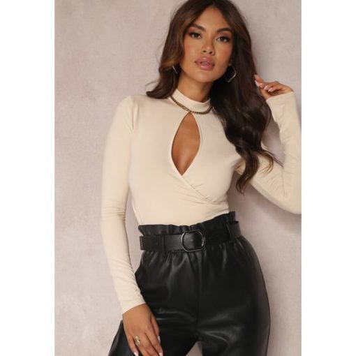 Jasnobeżowa Bluzka z Wycięciem Siss