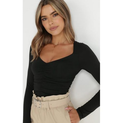 Czarna Bluzka z Marszczeniem i Długim Rękawem Naeramia
