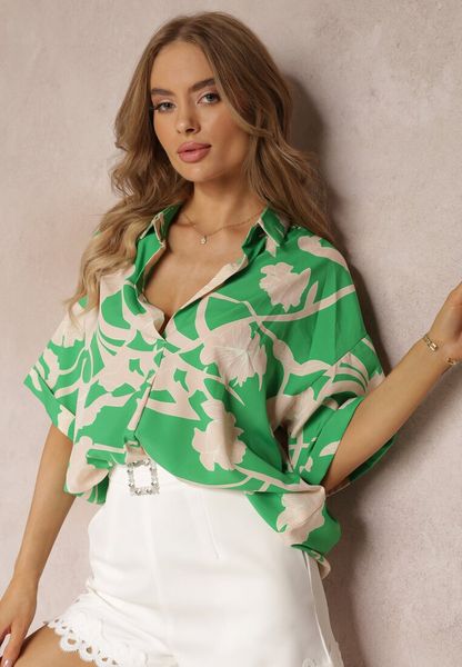 Zielona Kwiecista Bluzka z Krótkimi Rękawami Andresa