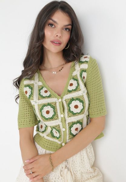 Zielona Szydełkowa Bluzka z Krótkim Rękawem Nastasia
