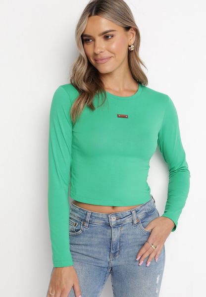 Zielona Bawełniana Bluzka z Długim Rękawem Ellemacra