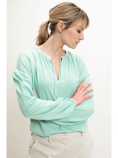 – dekolt: z rozcięciem- rękaw: bufiasty- krój: luźny- look: jednokolorowy