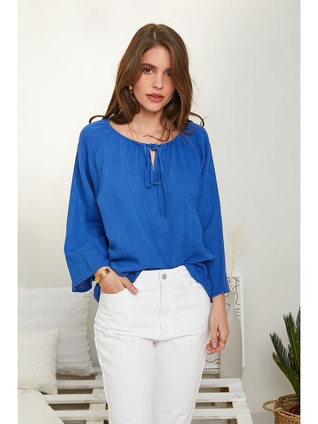 – czysty len- dekolt: V- krój: luźny- look: jednokolorowy