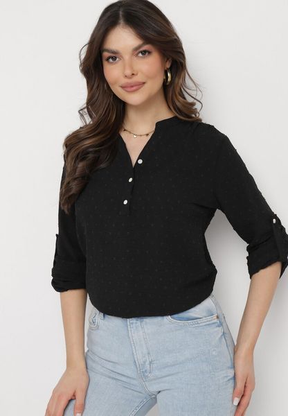 Czarna Bluzka z Tkaniny Plumeti z Guzikami Irlena