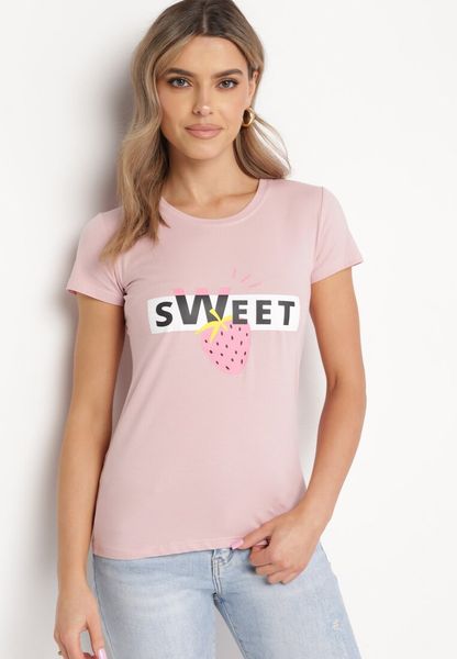 Różowa Bawełniana Bluzka z Nadrukiem i Napisem Vemassa