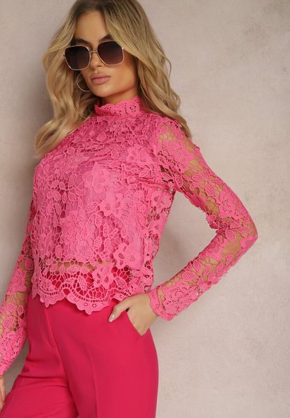 Bluzka Rissanen ze stójką oraz długim, prześwitującym rękawem oraz tyłem. W całości dekorowana kobiecą koronką, o nieregularnym zakończeniu. Pod spodem nieelastyczna podszewka. Zapinana na zamek błyskawiczny z tyłu. Będzie doskonale wyglądać zestawiona z dzianinową spódnicą lub skórzanymi spodniami!