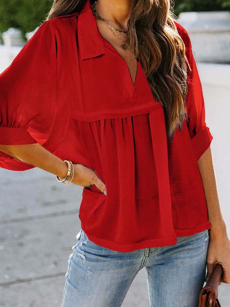 – kołnierz: kent- dekolt: V- rękaw: bufiasty- długość rękawa: 3/4- krój: luźny- look: jednokolorowy