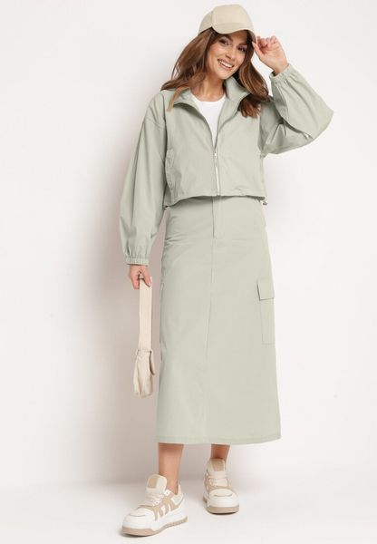 Miętowy Komplet Casualowy Bluza z Suwakiem i Stójką oraz Spódnica z Kieszeniami Hettora