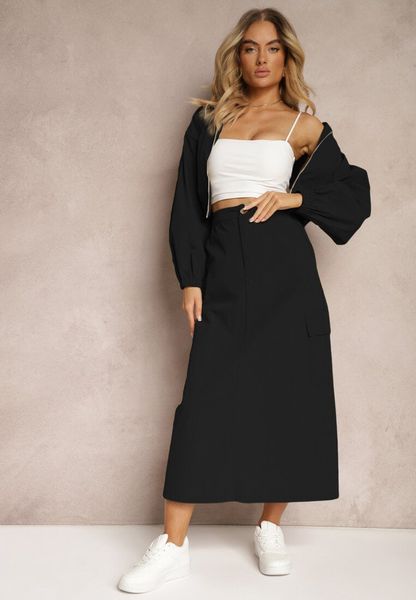 Czarny Casualowy Komplet 2-Częściowy Rozpinana Bluza i Spódnica z Kieszeniami na Klapy Lennira