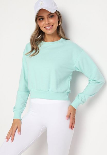 Miętowa Bluza z Dodatkiem Bawełny Wykończona Ściągaczami Evilaya