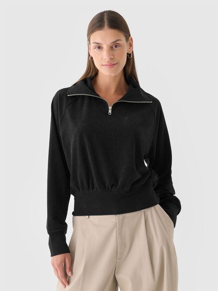 4F Bluza dresowa z weluru nierozpinana bez kaptura damska – czarna XS