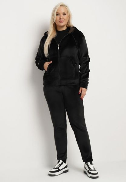 Czarny Welurowy Komplet Dresowy z Polarem Spodnie i Bluza Seviona